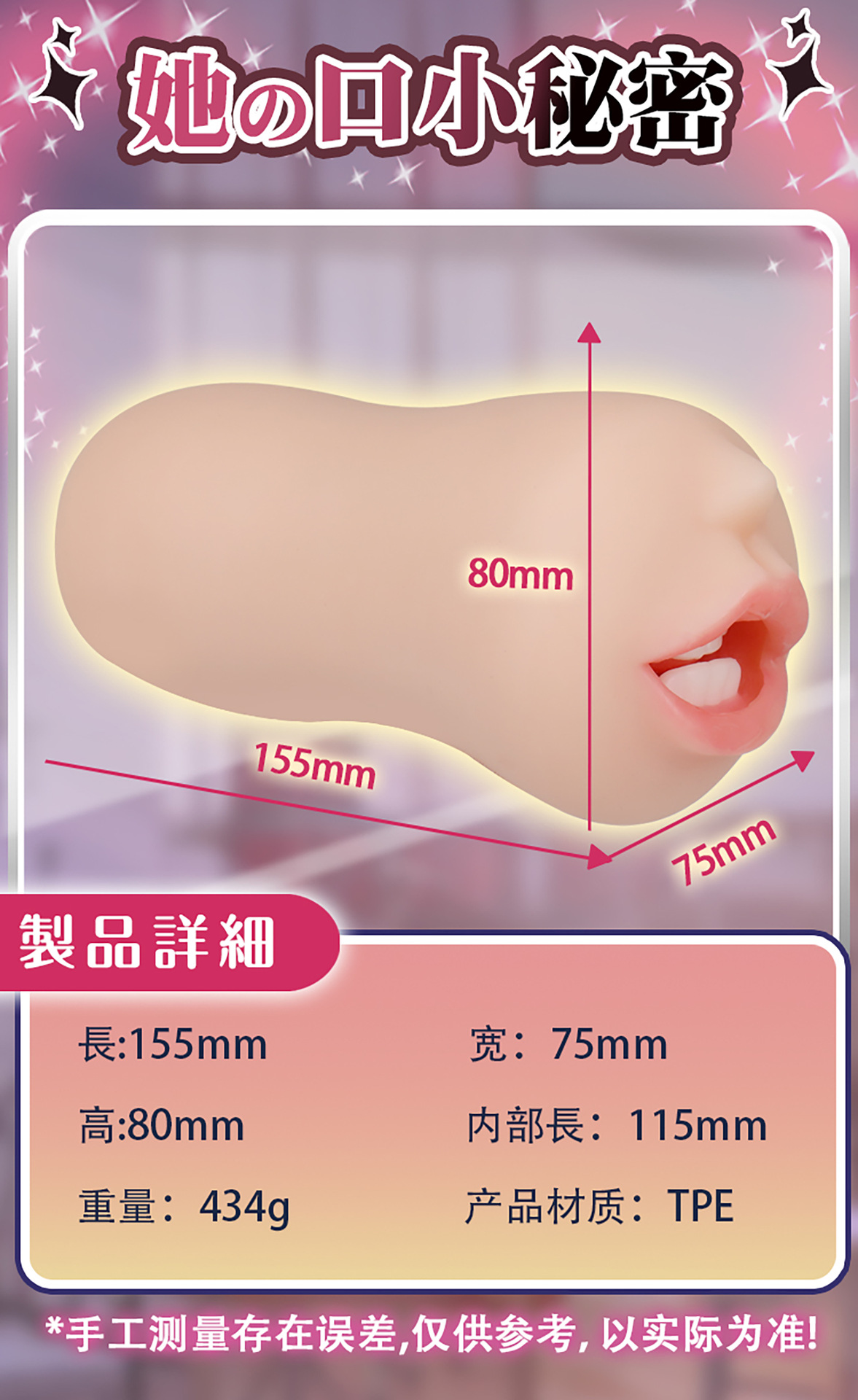Experience authentic oral sensations with BDD Real Mouth. The realistic lips, tongue, and inner textures recreate the feeling of being gently “bitten” while wrapped in warmth. Unique upper palate stimulation adds realism. Made from body-safe TPE with EU CE & RoHS certification, it’s safe, reusable, and easy to clean. Compact in size (155mm length, 434g weight) with a 115mm internal canal, it offers authentic oral sensation and discreet pleasure for men.