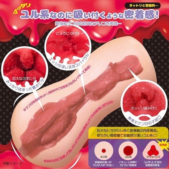 The ACME HACKS Sticky Fit is a closed-type male sleeve designed by Magic Eyes Japan. Its soft, layered inner structure features deep folds and a flexible design that simulates natural texture variations. This model focuses on a “sticky and enveloping” feel, combining tight contact with a soft surface texture.