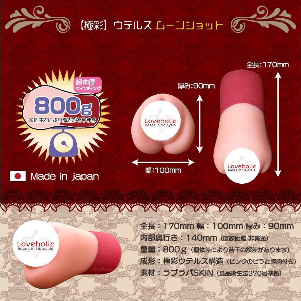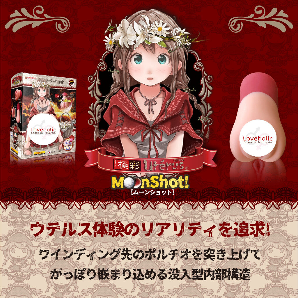 The Gokusai Uterus MoonShot Onahole is the latest in this series of remarkably successful Japanese pocket puss.y toys by Magic Eyes. Like its predecessors, the masturbator is fleshy and realisti.c in texture, but the enhanced vagina design is now particularly winding. Penetrate the MoonShot and embark upon a meandering journey into Red Riding Hood's uterus: her puss.y spreads out like a delta of pleasure, before pulling you further down and deeper into her body. Boasting a solid part at the end for better grip, this is a hefty, deluxe masturbation toy.