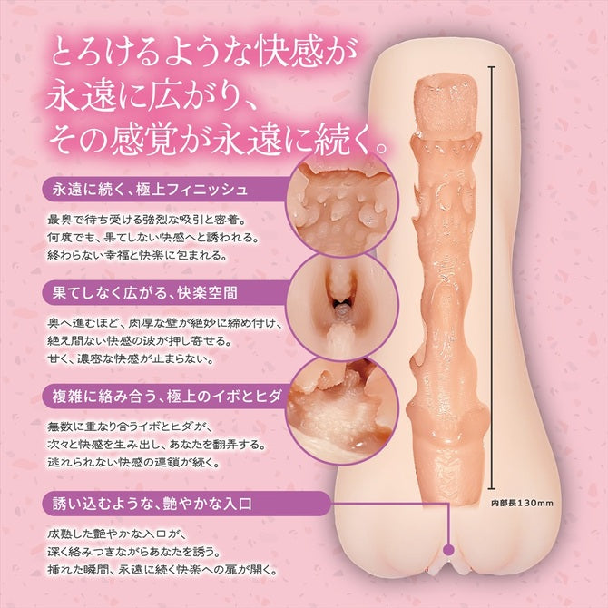 Deeper inside, layered folds create a sensation of continuous membranes, finally tightening around you with a womb-like closing structure for a satisfying finish.