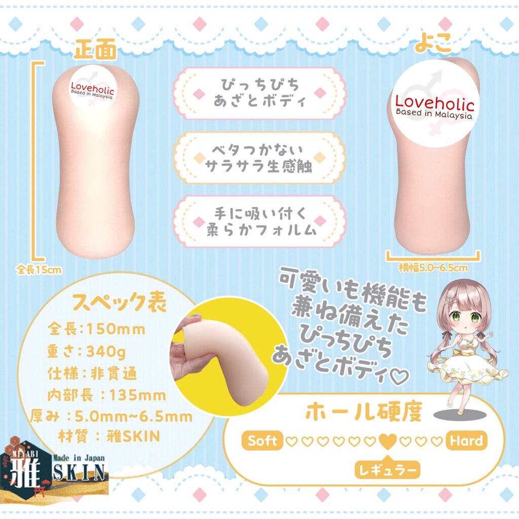 The masturbator is crafted from Miyabi Skin, a skin design original to Magic Eyes, offering a rea.listic and youthful texture. The pocket pu.ssy is housed in a sleeve that is moderately floppy, allowing some degree of manipulation and response to your fingers, but remaining firm overall for a stronger grip and focusing your attention on the important task of probing her vagina.