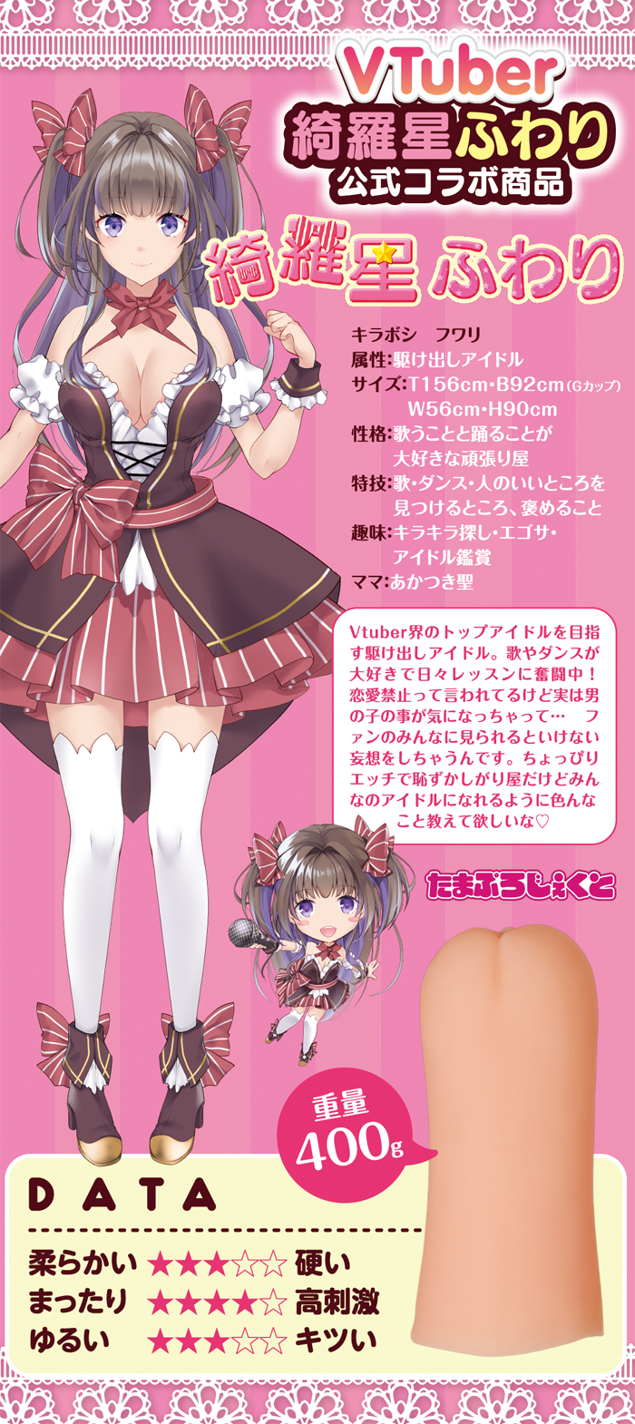 Vtuber Kiraboshi Fuwari Official Collaboration (TMT-1572) is a premium Japanese-made masturbator designed in collaboration with the rising idol VTuber, Kiraboshi Fuwari. Crafted with soft, body-safe materials, it delivers a gentle yet deeply stimulating sensation. The unique spiral folds create a tornado-like suction effect, while the vacuum-like tightness enhances every thrust, offering a realistic and highly pleasurable experience.