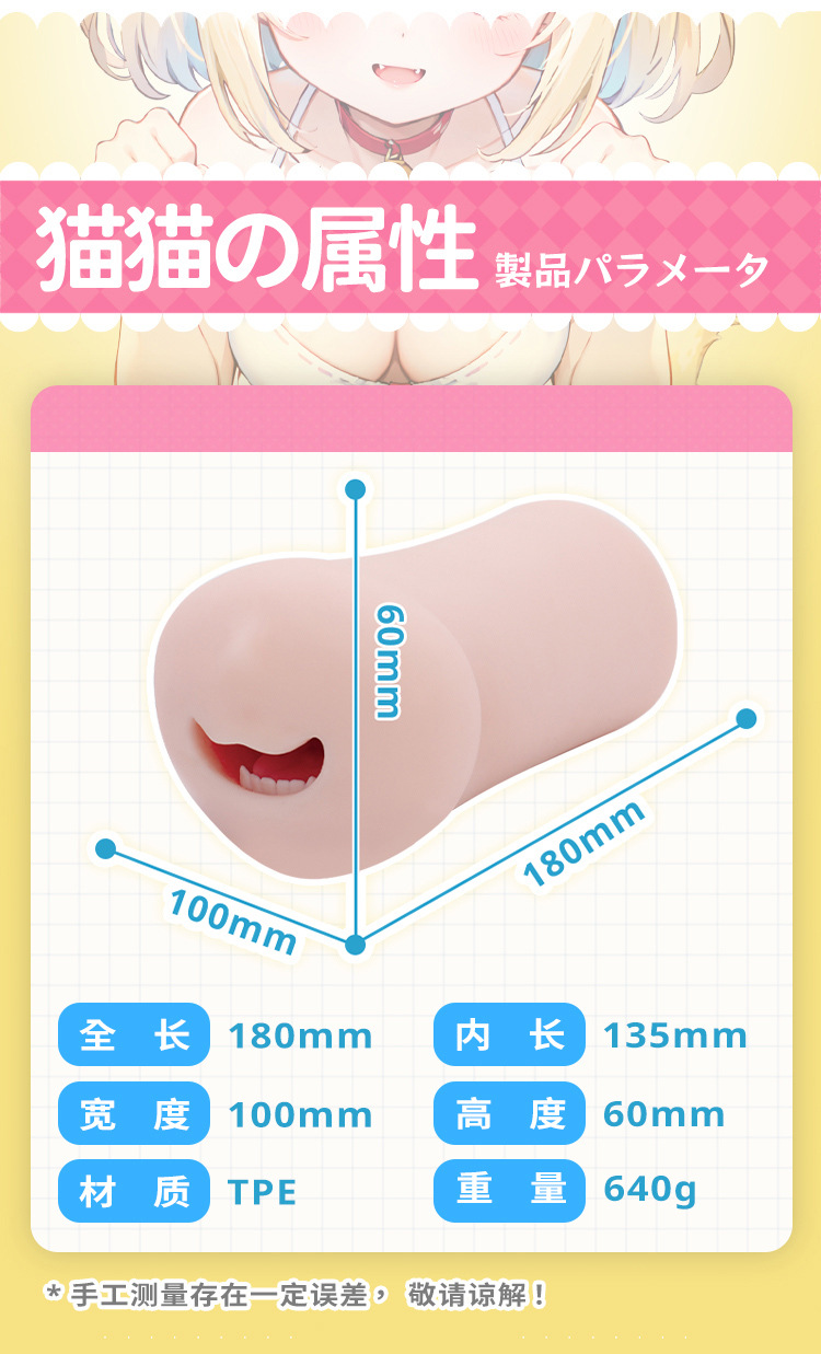 YUU Genki Cat Girl Mouth male cup made from soft TPE with realistic oral design. 180mm length, 135mm internal, 640g weight, non-through type. Compact, durable, and easy to clean. Discreet packaging and local ready stock in Malaysia with fast delivery.